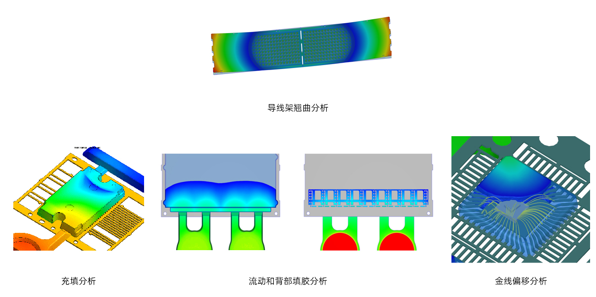 2,通過動態的方式呈現充填、硬化、熟化后導線架翹曲、金線偏移等情況;