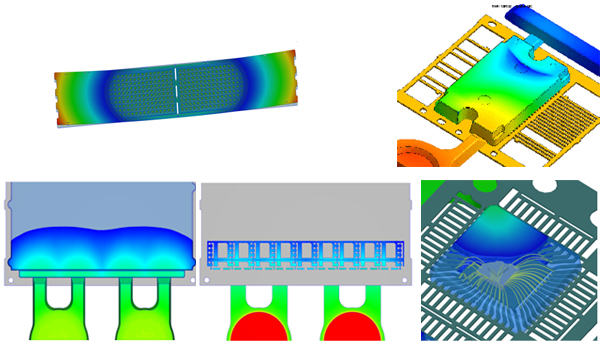 分析能力 1,提供一系列的晶片封裝模擬解決方案; 2,通過動態(tài)的方式呈現(xiàn)充填、硬化、熟化后導(dǎo)線架翹曲、金線偏移等情況; 3,不同牌號的環(huán)氧樹脂在相同環(huán)境下的成型結(jié)果分析及對比。