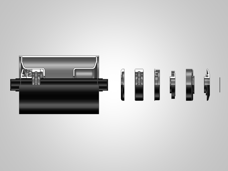 TK型結構是一種帶式輸送機托輥用非接觸式迷宮密封形式,規(guī)格型號從6203至6312,主要部件由軸承座、內(nèi)密封圈、迷宮內(nèi)外密封圈、罩蓋、防護罩組成,裝配后托輥制品均有良好的防水防塵性能和低旋轉阻力。